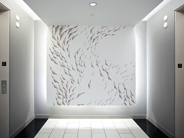 The buildings stark white interiors are beautiful but left Diller wanting more color. A series of artists were commissioned to generate distinct moments within the building that would serve as significant navigational points throughout the building.